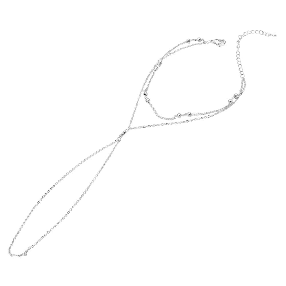 Delicate Beaded Accent Layered Hand Chain Bracelet