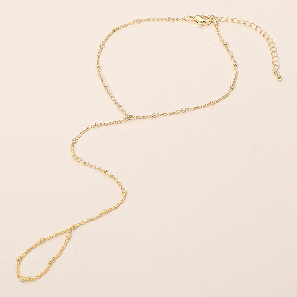 Details • Size : 5" H, 7.5" + 2.25" L • Ring Size : Free • Minimal hand chain bracelet featuring a slim wrist chain connected to a subtle finger ring for an elegant, modern look. Designed to sit comfortably on the hand, this refined piece adds graceful movement and visual interest. Ideal for boutique displays, gifting, special occasions, or everyday styling with a clean, feminine aesthetic. • Made In Korea