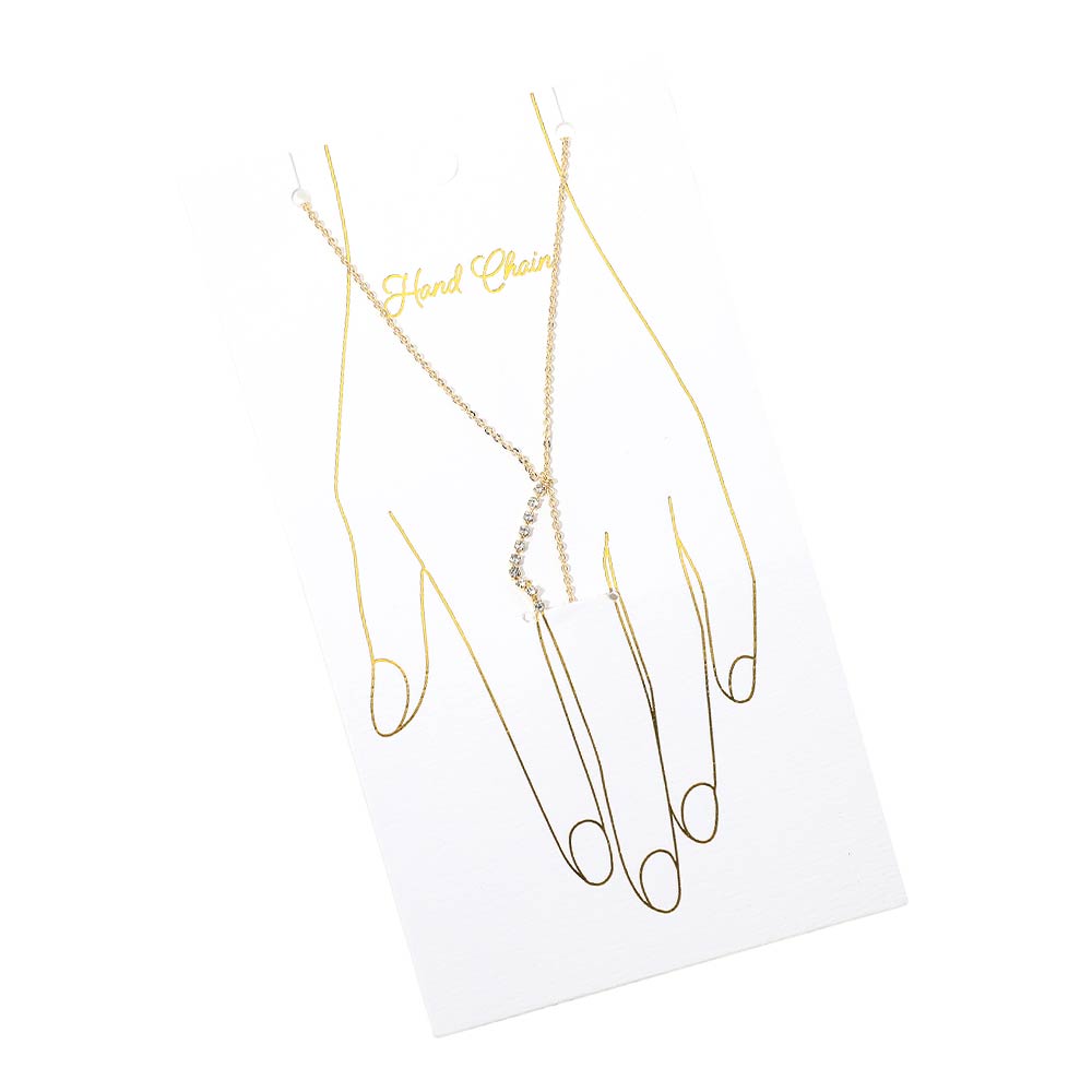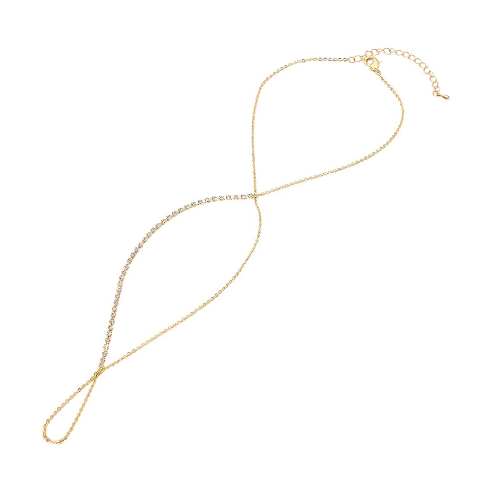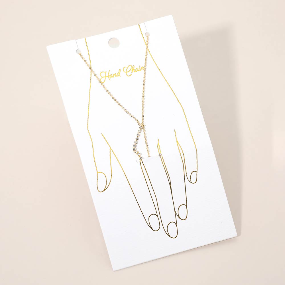 • Refined hand chain bracelet featuring a slim wrist chain connected to a finger loop with a delicate crystal accent for subtle shine. Designed for elegant everyday wear, gifting, or boutique jewelry collections. Lightweight and comfortable, this piece adds graceful detail to minimalist styling and layers effortlessly with other accessories.
