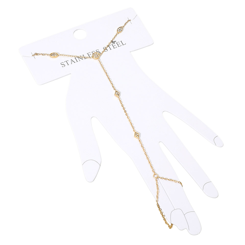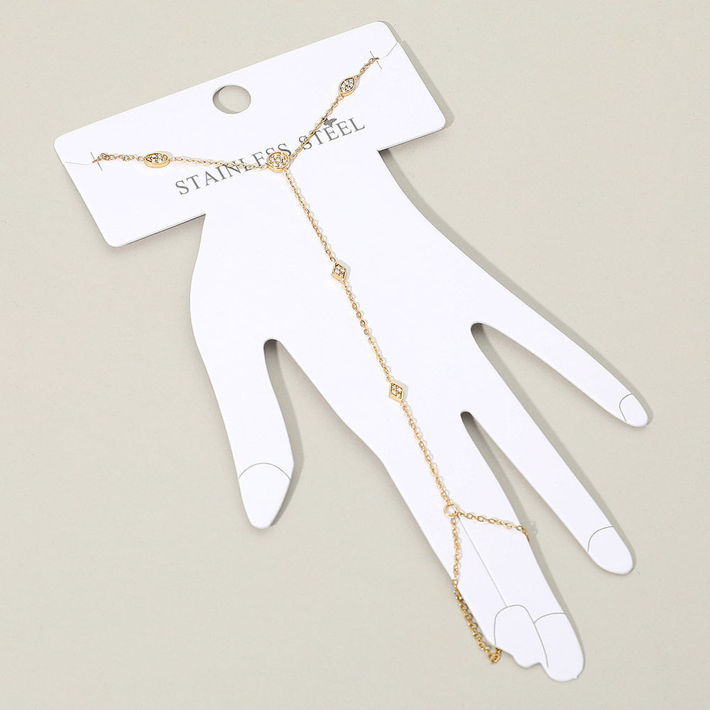 • Stylish hand chain bracelet featuring a delicate linked design that drapes gracefully from wrist to finger. Lightweight and refined, it adds a touch of elegance to everyday looks or special occasions. A chic accessory that highlights your personal style with subtle sparkle.