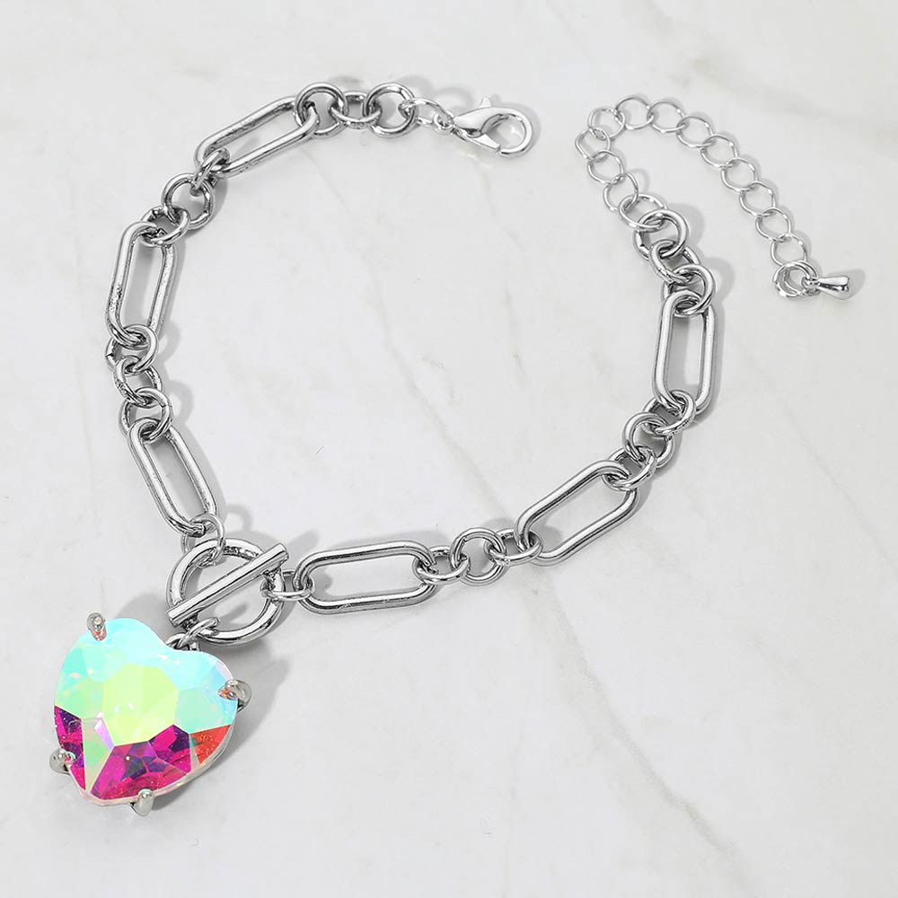 Chunky Heart Stone Cluster Toggle Charm Bracelet Chunky Heart Stone Cluster Toggle Charm Bracelet Chunky Heart Stone Cluster Toggle Charm Bracelet