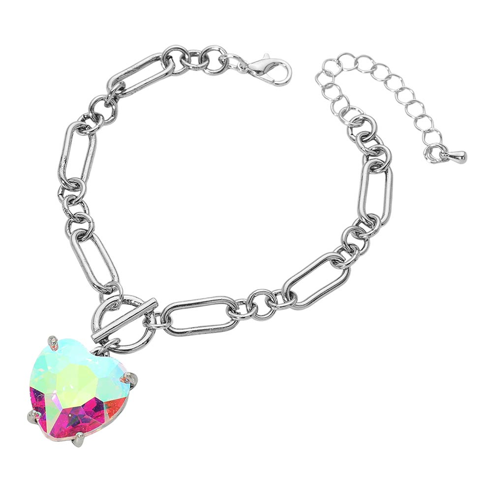Chunky Heart Stone Cluster Toggle Charm Bracelet