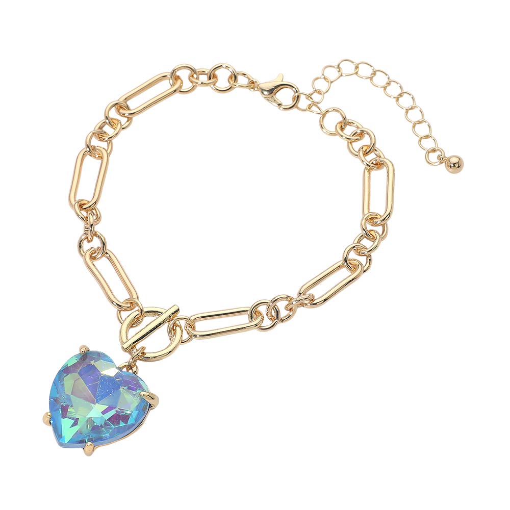 Chunky Heart Stone Cluster Toggle Charm Bracelet