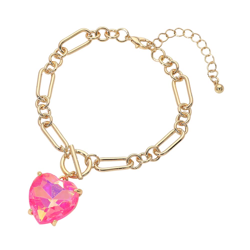 Chunky Heart Stone Cluster Toggle Charm Bracelet