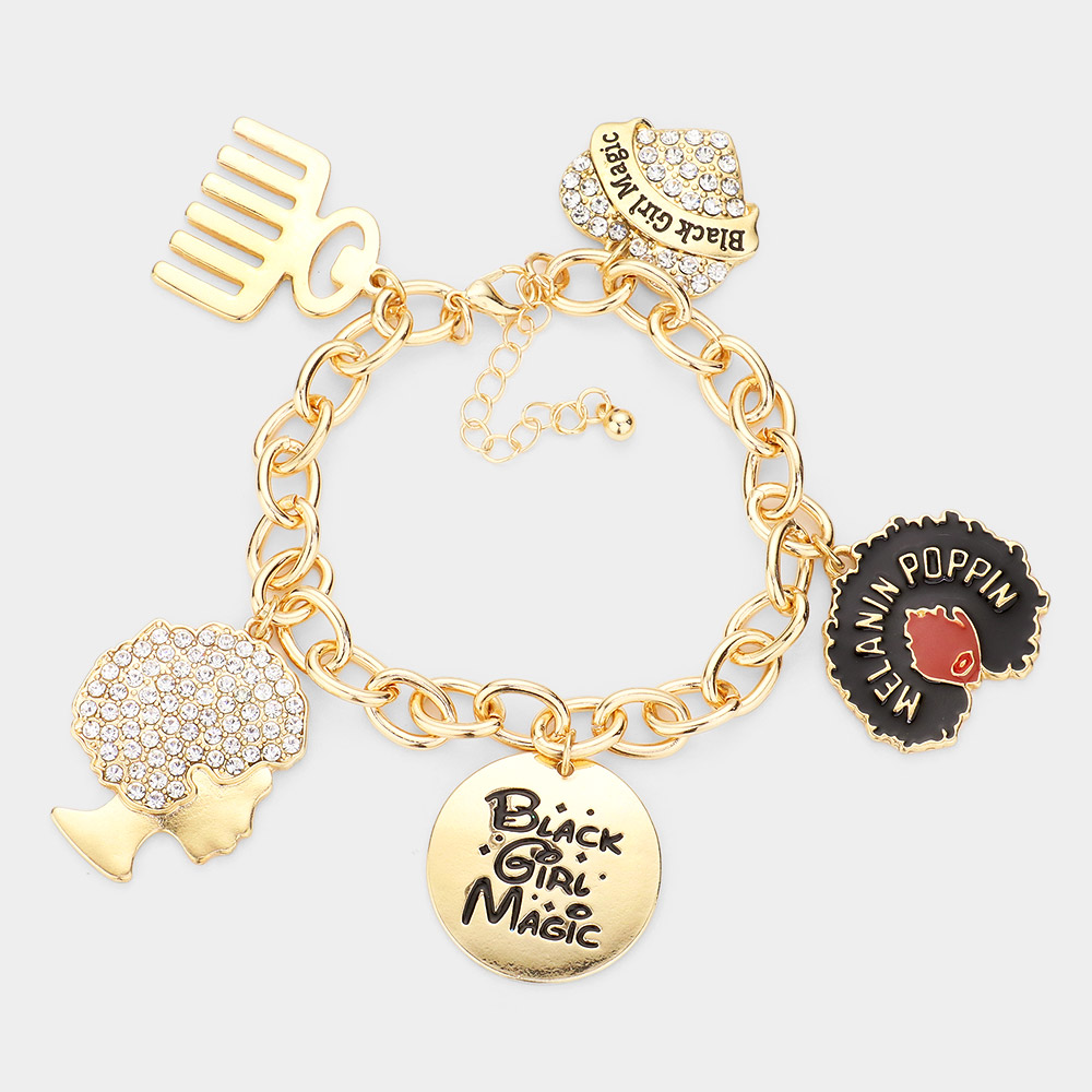 Comb Rhinestone Embellished Girl Heart Station Bracelet