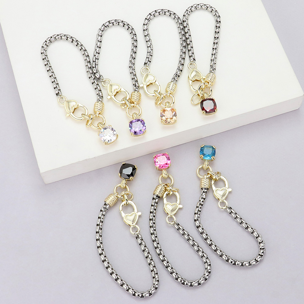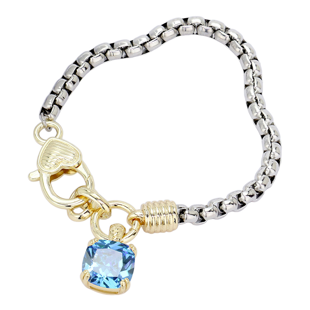 Cushion Cut CZ Stone Charm Pointed Two Tone Bracelet