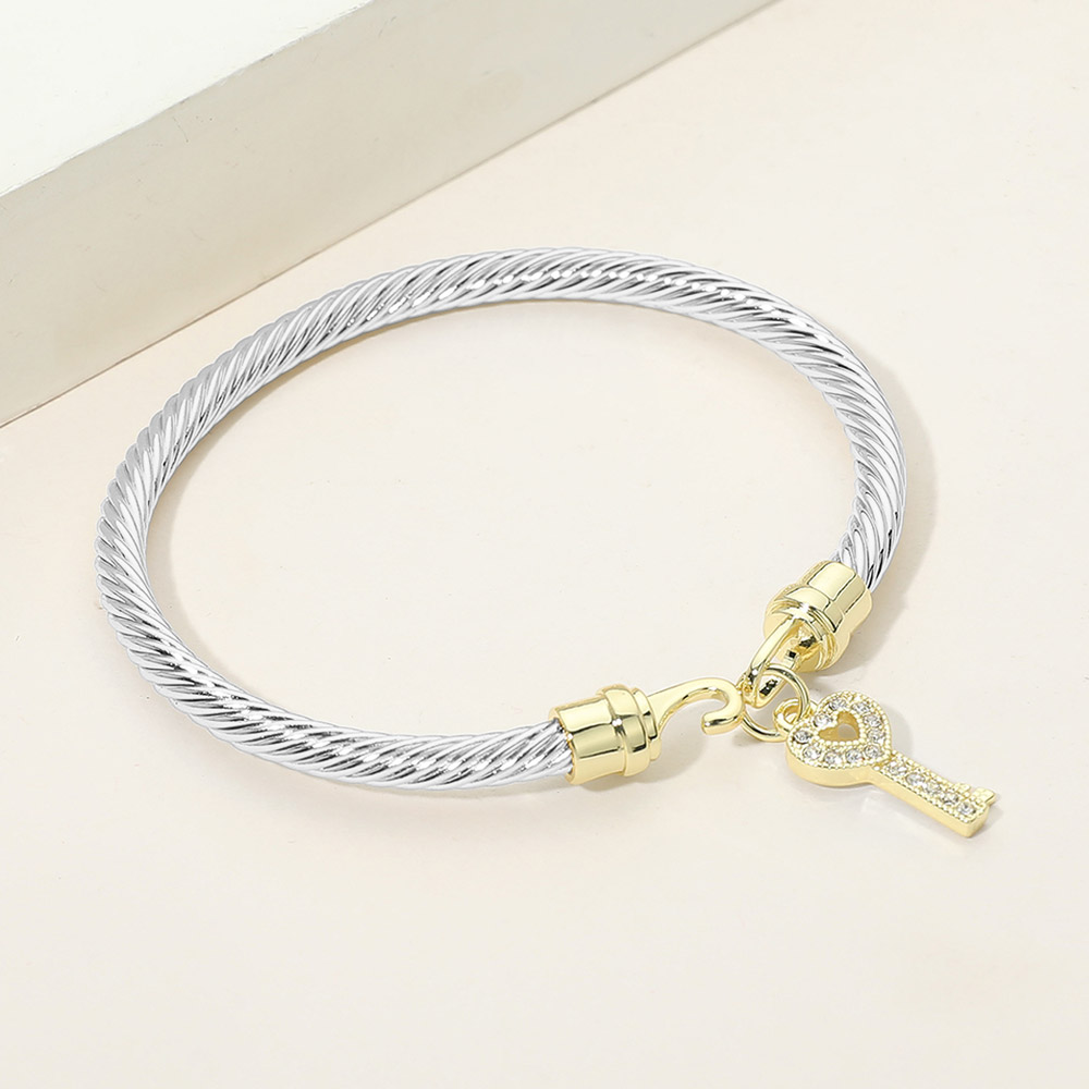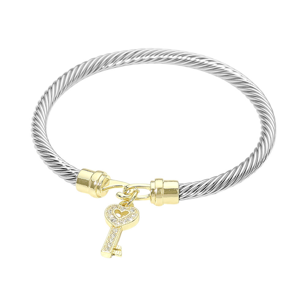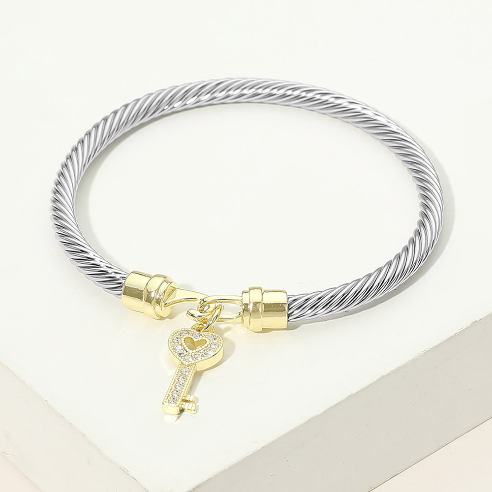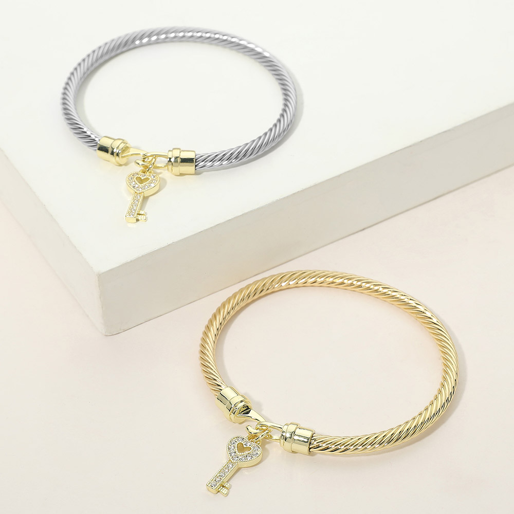 CZ Pave Key Charm Cable Bangle Bracelet CZ Pave Key Charm Cable Bangle Bracelet CZ Pave Key Charm Cable Bangle Bracelet CZ Pave Key Charm Cable Bangle Bracelet