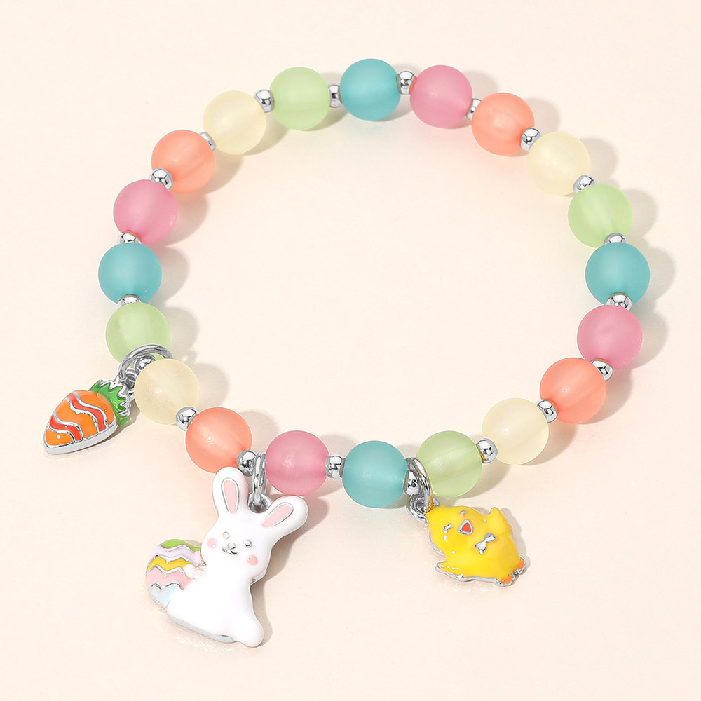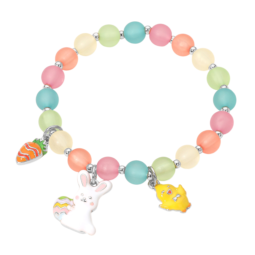 Easter Bunny Chick Carrot Charm Beaded Stretch Bracelet Easter Bunny Chick Carrot Charm Beaded Stretch Bracelet