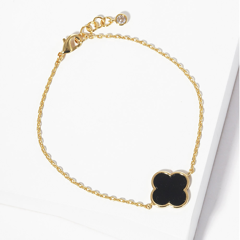 Gold Dipped Mother of Pearl Quatrefoil Charm Bracelet