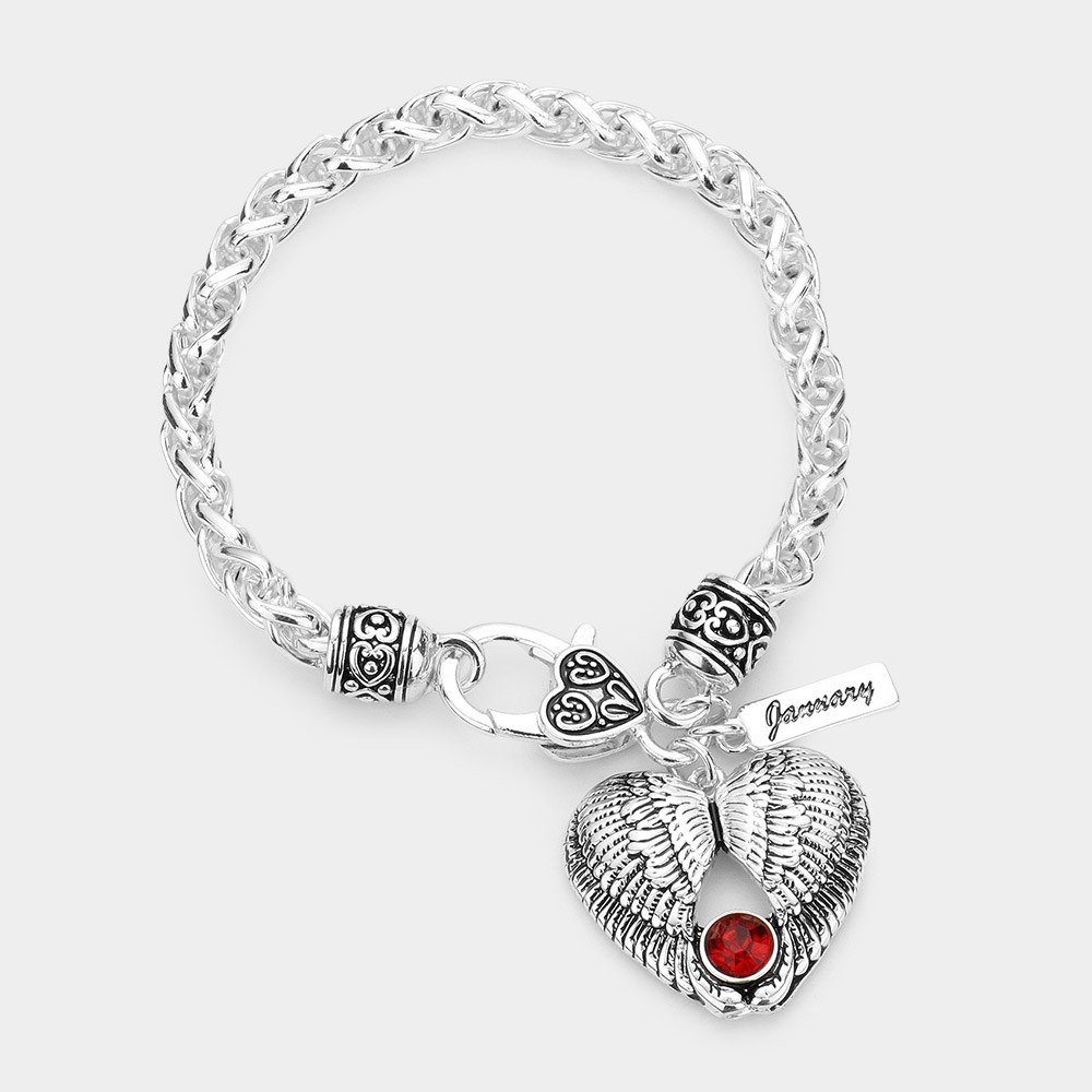 January - Birthstone Heart Charm Bracelet