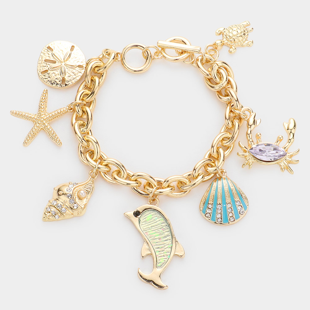 Sand Dollar Starfish Conch Shell Dolphin Crab Turtle Charm Toggle Bracelet