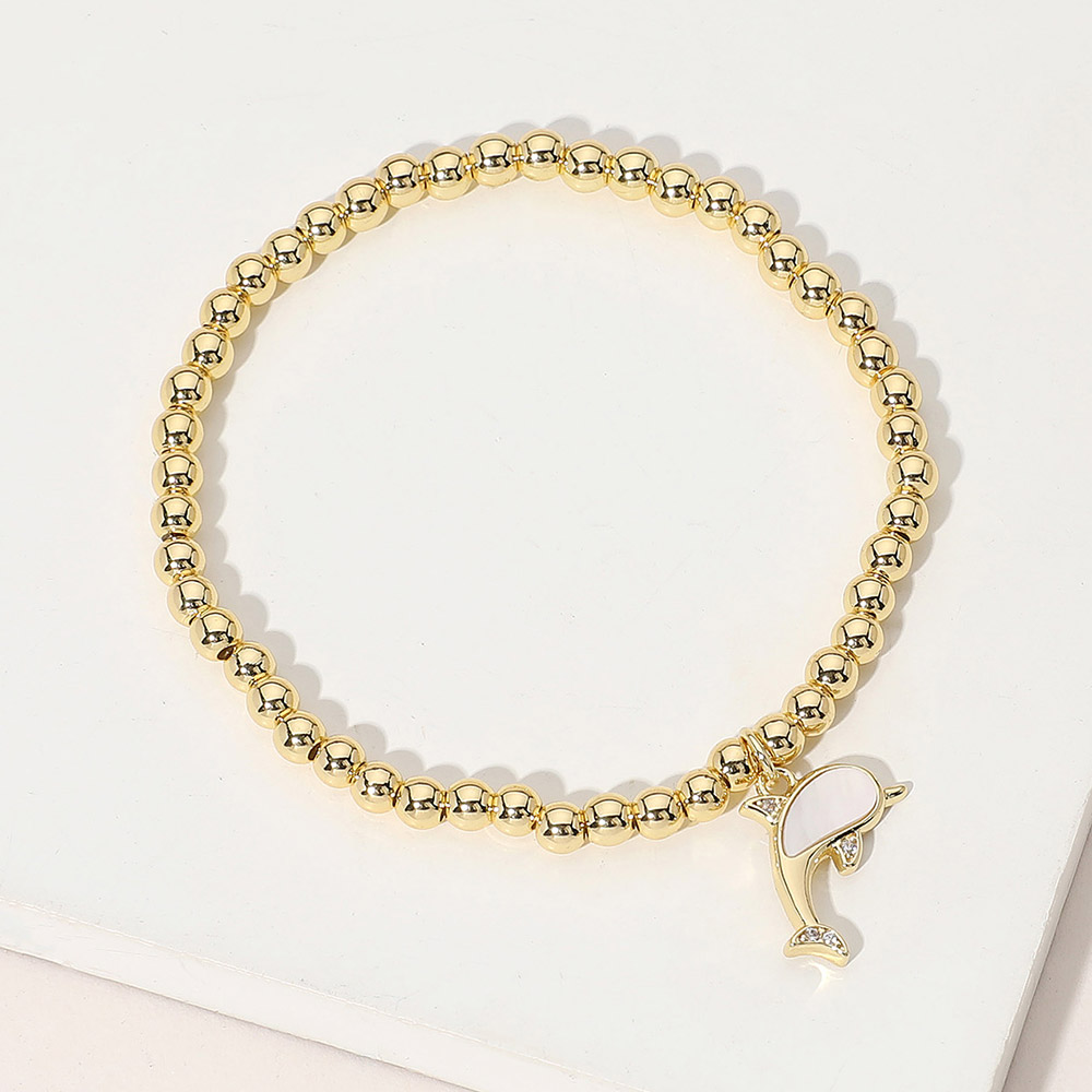 Details • Size : 0.2" H • Charm Size : 0.5" X 0.6" • Stretchable • Chic stretch bracelet with polished beads and a playful dolphin charm. Lightweight and stylish, perfect for casual wear or ocean-inspired accessory lovers. • Lead and Nickel Compliant • Stainless Steel