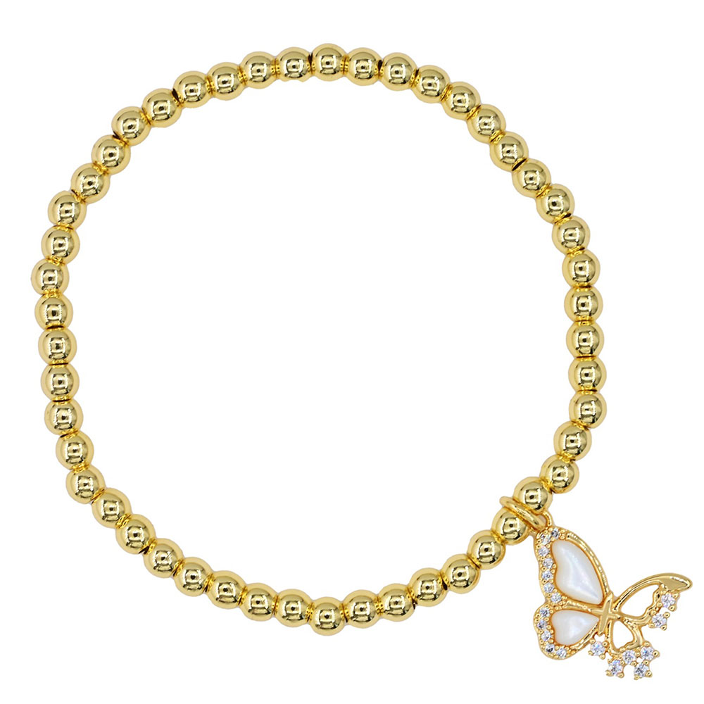 Details • Size : 0.2" H • Charm Size : 0.6" X 0.6" • Stretchable • Add a touch of charm with this butterfly beaded bracelet, designed with delicate details and a graceful appeal. Perfect for stacking or wearing solo, this bracelet enhances everyday outfits and special looks with timeless style and elegance. • Lead and Nickel Compliant • CZ Cubic Zirconia • Stainless Steel
