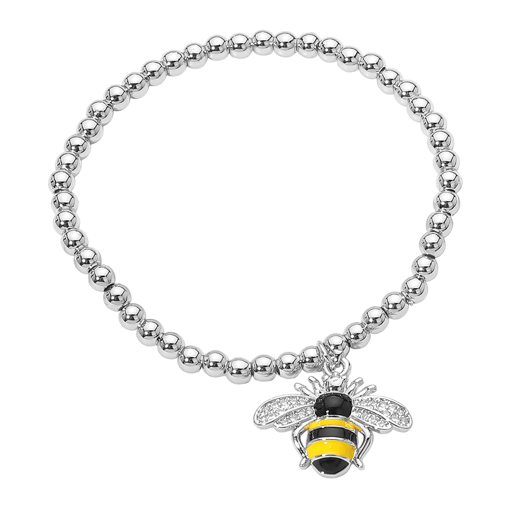 Details • Size : 0.1" H • Charm Size : 0.8" X 0.7" • Stretchable • This beaded stretch bracelet features a charming bee pendant with refined detailing for a playful yet elegant accent. Designed for comfortable slip-on wear, it adds personality and movement to everyday outfits, making it a versatile accessory for gifting, seasonal styling, or boutique collections. • CZ Cubic Zirconia • Stainless Steel
