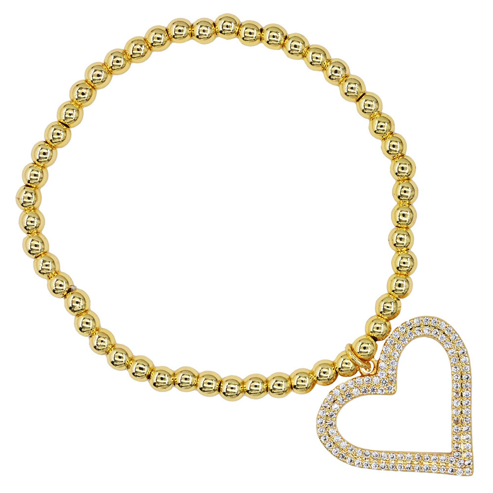 Stainless Steel CZ Stone Paved Open Heart Charm Stretch Bracelet