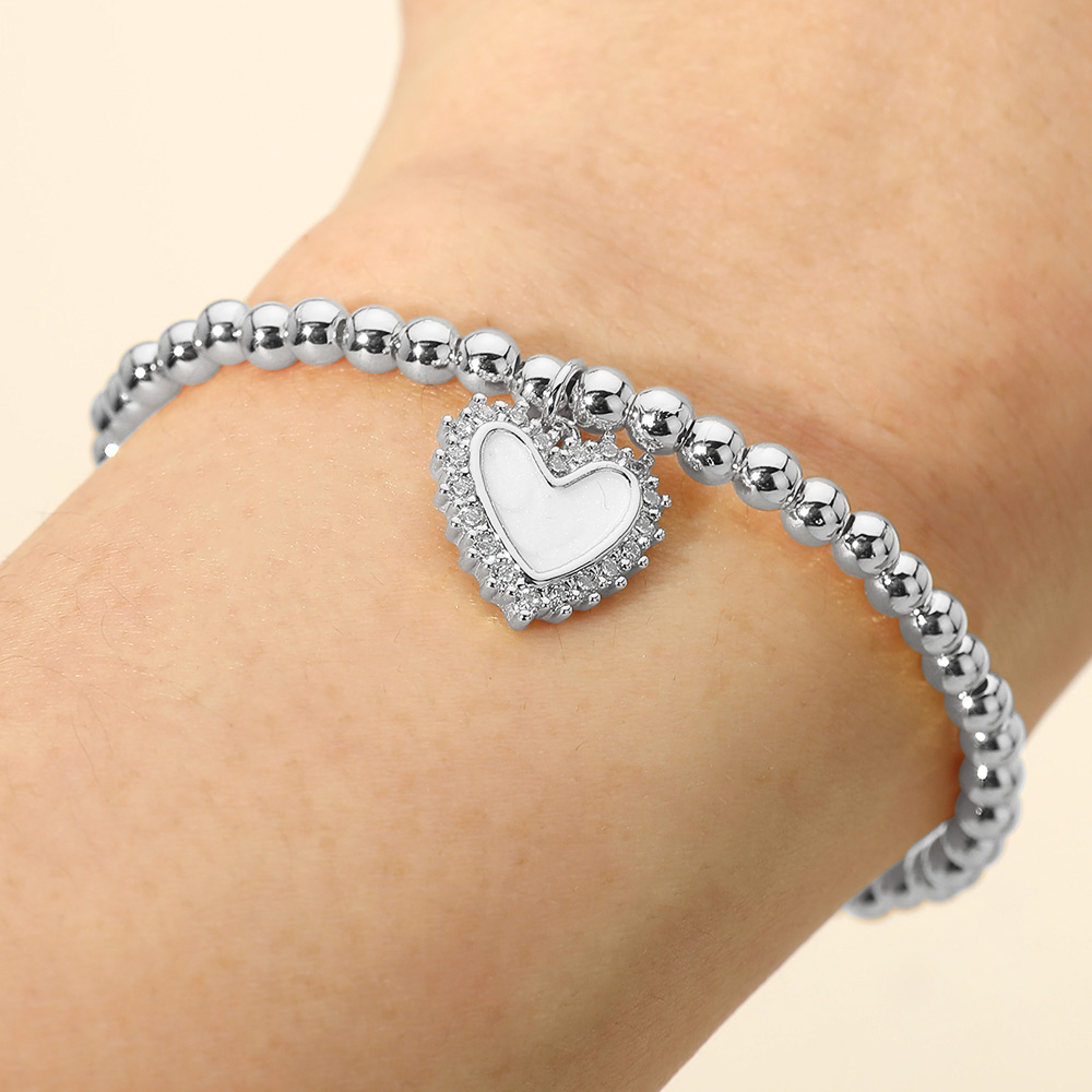 Stainless Steel CZ Trim Mother of Pearl Heart Charm Beaded Stretch Bracelet Stainless Steel CZ Trim Mother of Pearl Heart Charm Beaded Stretch Bracelet Stainless Steel CZ Trim Mother of Pearl Heart Charm Beaded Stretch Bracelet Stainless Steel CZ Trim Mother of Pearl Heart Charm Beaded Stretch Bracelet