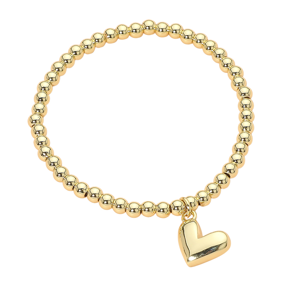 • This heart charm beaded stretch bracelet features a smooth beaded design accented with a classic heart charm for a timeless, everyday look. Designed with a flexible stretch fit, it’s perfect for stacking, gifting, and boutique collections, appealing to customers who love simple, meaningful jewelry.