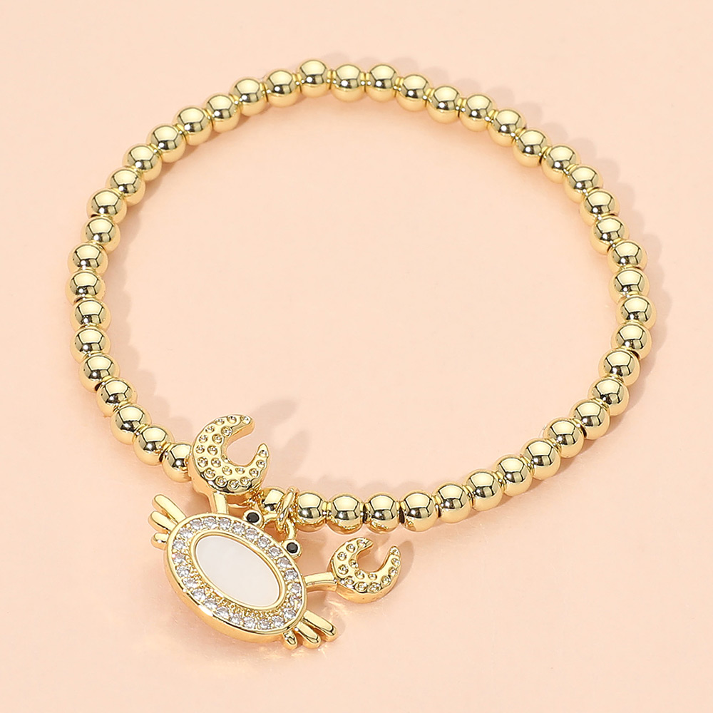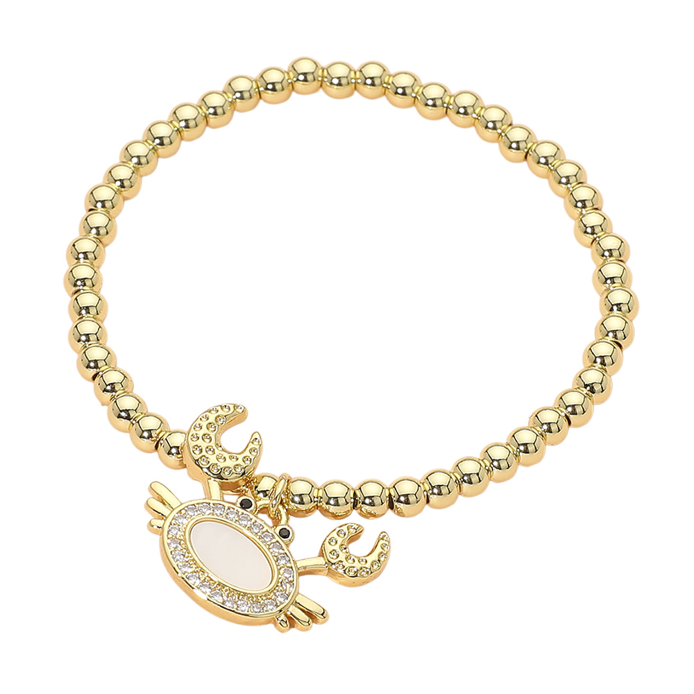 Stainless Steel Mother of Pearl CZ Stone Paved Crab Charm Beaded Stretch Bracelet Stainless Steel Mother of Pearl CZ Stone Paved Crab Charm Beaded Stretch Bracelet Stainless Steel Mother of Pearl CZ Stone Paved Crab Charm Beaded Stretch Bracelet