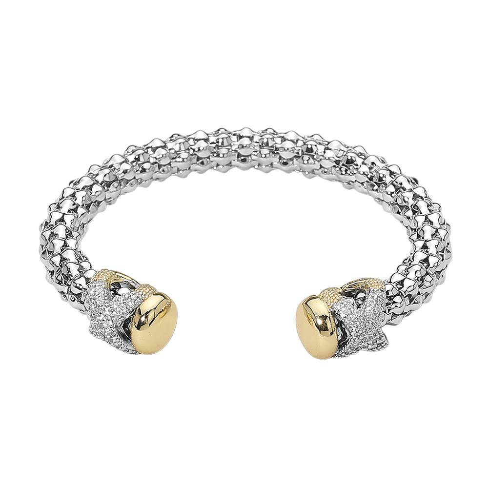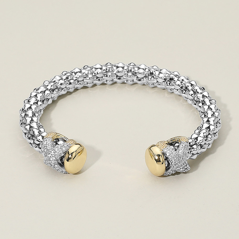 Details • Size : 0.5" H, 2.4" D • Cuff • This cz stone paved crisscross accent tip open cuff bracelet showcases a refined, dimensional design that blends classic structure with modern appeal. Its decorative end caps add a striking finish, making it an effortless accent for elevating everyday outfits or enhancing polished, statement-ready looks. • CZ Cubic Zirconia