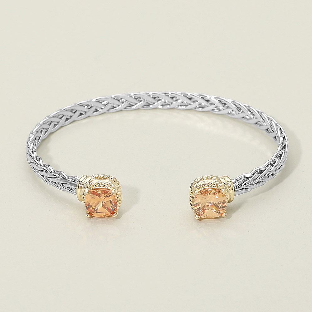 14K Gold Plated CZ Stone Tip Two Tone Braided Cuff Bracelet 14K Gold Plated CZ Stone Tip Two Tone Braided Cuff Bracelet 14K Gold Plated CZ Stone Tip Two Tone Braided Cuff Bracelet