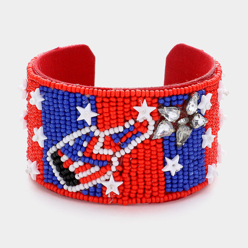 YALL Message American USA Flag Colored Seed Beaded Cuff Bracelet