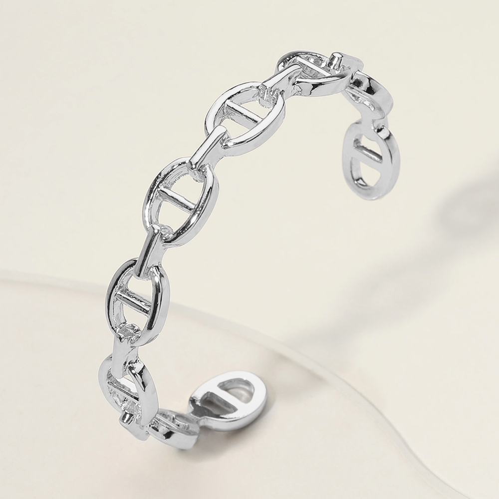 Crystal Detail Embossed Metal Anchor Stretch Bracelet
