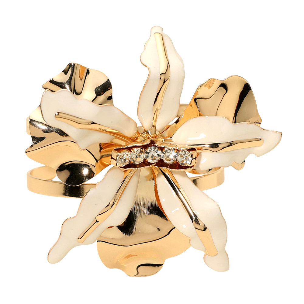 • Elegant statement cuff bracelet featuring a sculptural floral design with a sparkling center accent. Designed to elevate everyday outfits or special occasion looks, this eye-catching accessory adds dimension, shine, and modern charm to any jewelry collection.