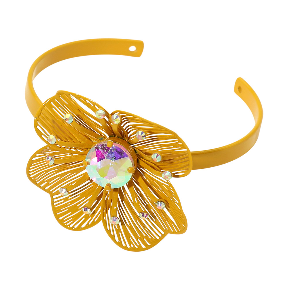• Statement cuff bracelet featuring a bold floral design with a faceted center accent and delicate crystal details. Designed to stand out with sculptural petals and eye-catching shine, this cuff adds artistic flair and elegant impact to everyday outfits or special occasion styling.
