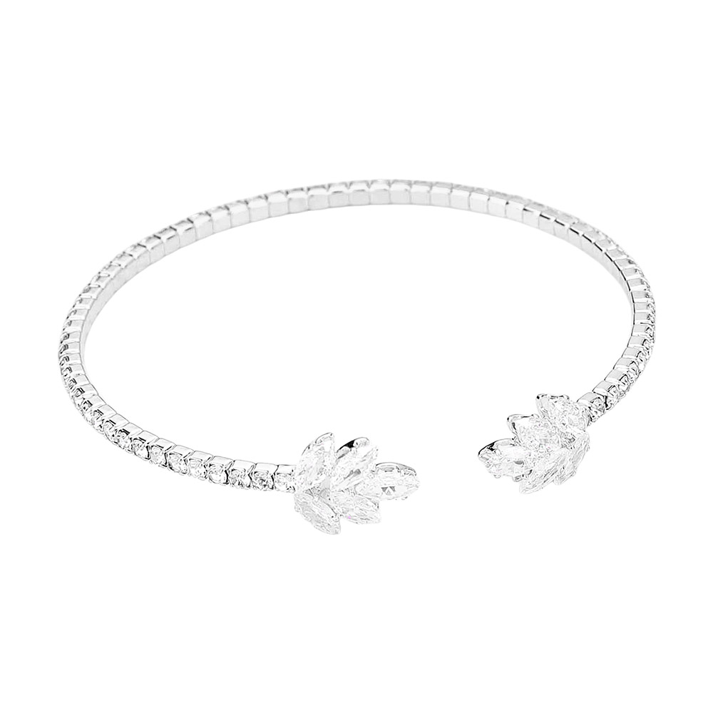 CZ Stone Embellished Marquise Stone Cluster Leaf Tip Cuff Bracelet