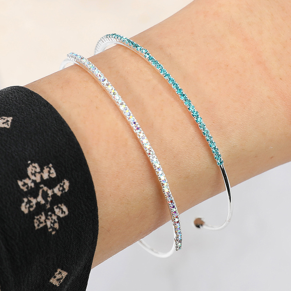 • Sleek and elegant cuff bracelet featuring a slim open bangle design adorned with shimmering cz crystals. Perfect for adding a subtle sparkle to any outfit, ideal for stacking or wearing alone for a refined look.