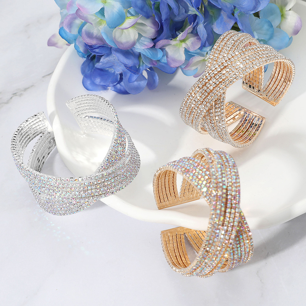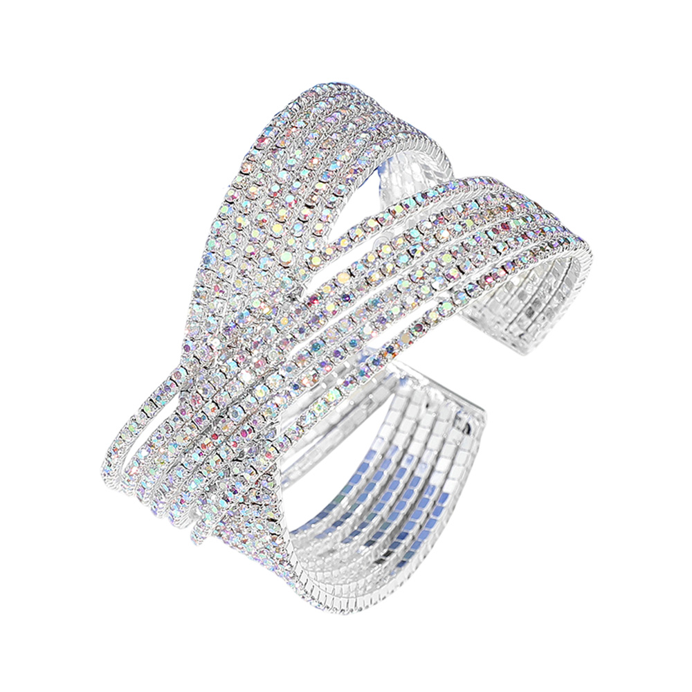 CZ Stone Paved Crisscross Evening Cuff Bracelet