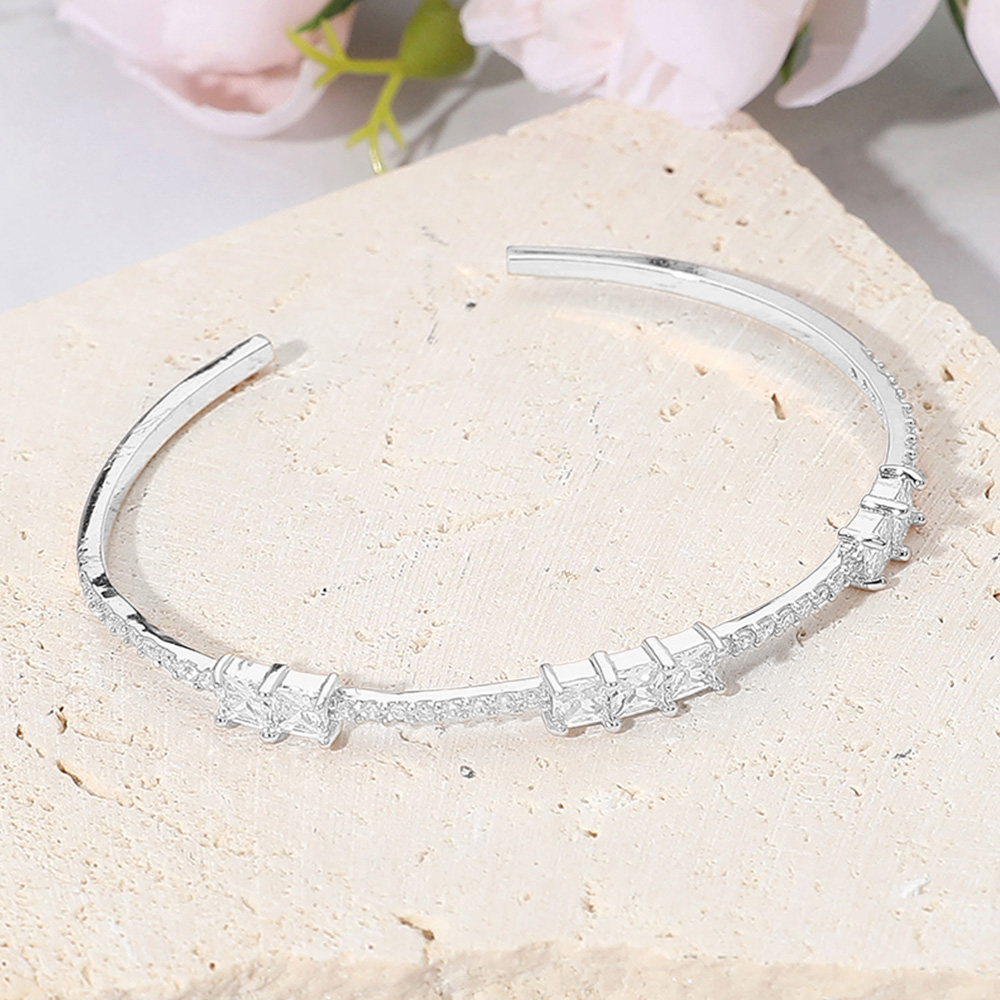 Double Square CZ Stone Cluster Station Pointed Evening Cuff Bracelet
