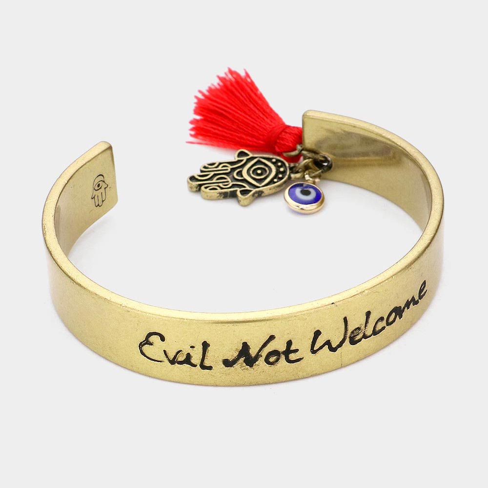 Evil Not Welcome Hamsa Hand Evil Eye Tassel Charm Cuff Bracelet