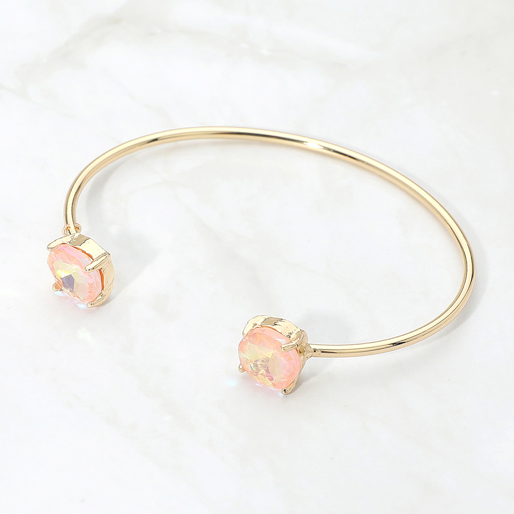 Details • Size : 0.4" H, 2.5" D • Cuff • This double stone open cuff bracelet features a sleek minimalist silhouette accented with two faceted stones for subtle sparkle. Designed for easy slip-on wear, it offers a modern, refined look that works for everyday styling or special occasions, making it a versatile choice for boutique jewelry collections and gift-ready displays. • Lead and Nickel Compliant