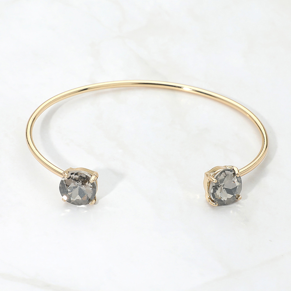 • This double stone open cuff bracelet features a sleek minimalist silhouette accented with two faceted stones for subtle sparkle. Designed for easy slip-on wear, it offers a modern, refined look that works for everyday styling or special occasions, making it a versatile choice for boutique jewelry collections and gift-ready displays.