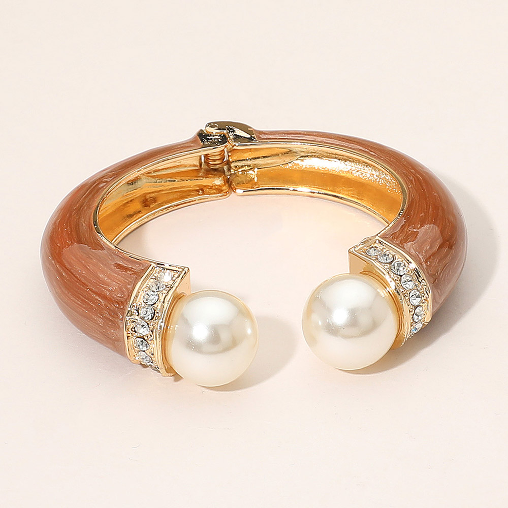 Details • Size : 0.75" H, 2.4" D • Cuff / Hinged Closure • Stylish open cuff bracelet featuring dual rounded ends accented with sparkling crystals. The smooth enamel surface and elegant shape make it a standout accessory for any outfit. Perfect blend of modern chic and timeless elegance for casual or dressy occasions. • Lead and Nickel Compliant • Gold Dipped
