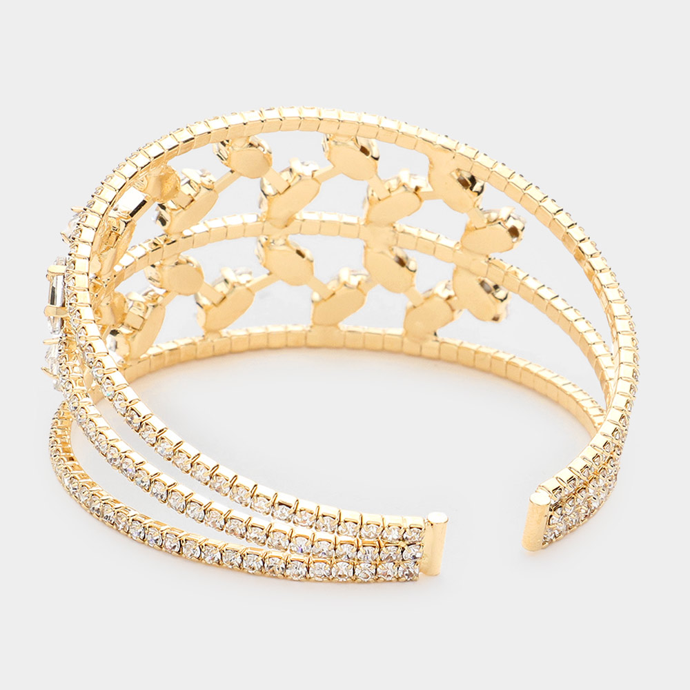 Two Tone CZ Stone Paved Rope Cuff Bracelet