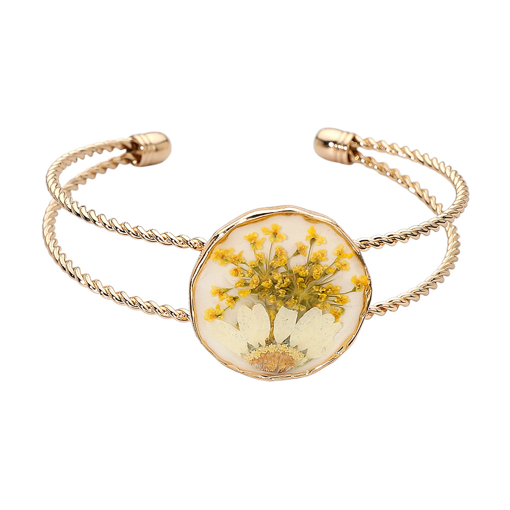 Real Flower Resin Round Center Split Cuff Bracelet Real Flower Resin Round Center Split Cuff Bracelet Real Flower Resin Round Center Split Cuff Bracelet