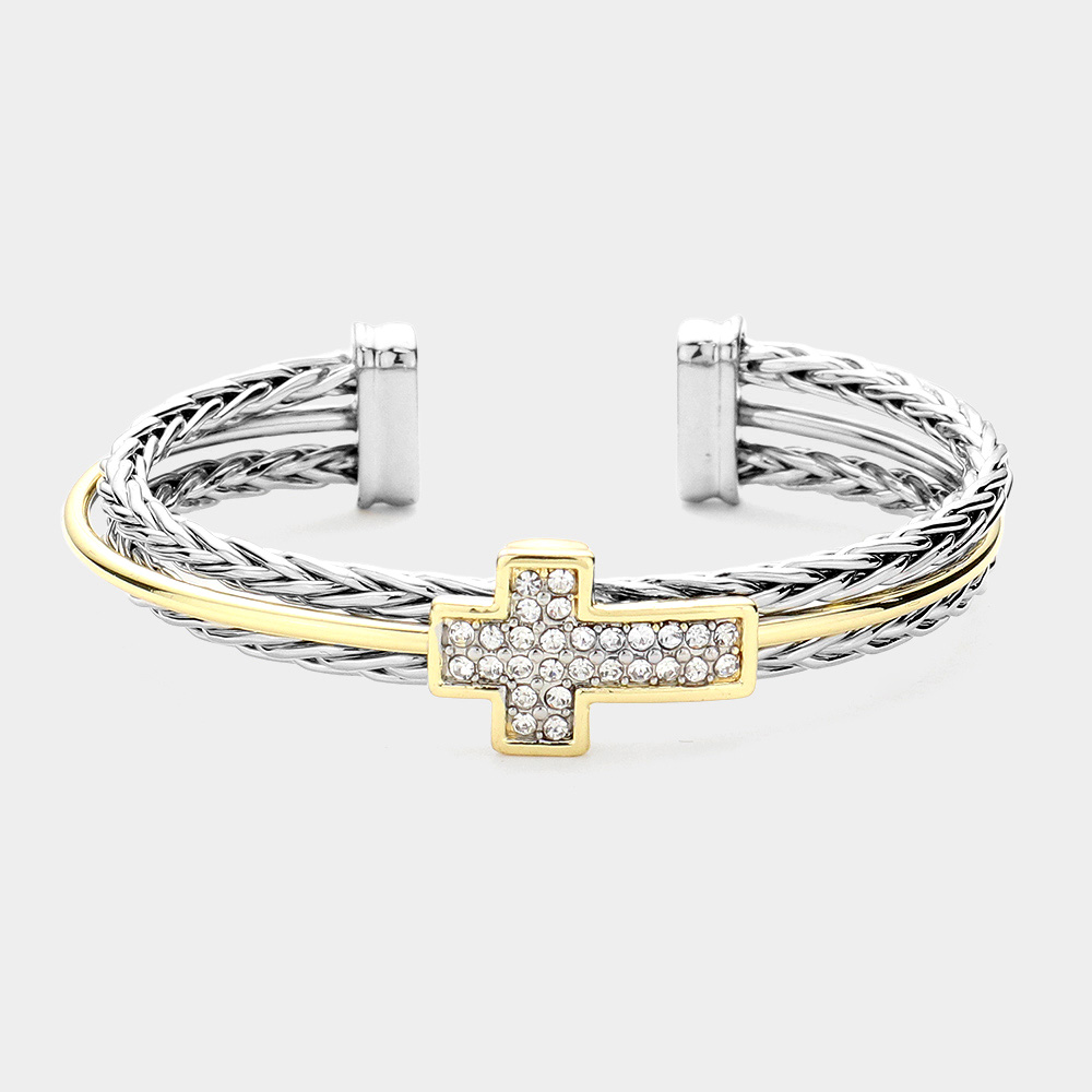 Antique Metal Multi Cross Charm Station Toggle Bracelet
