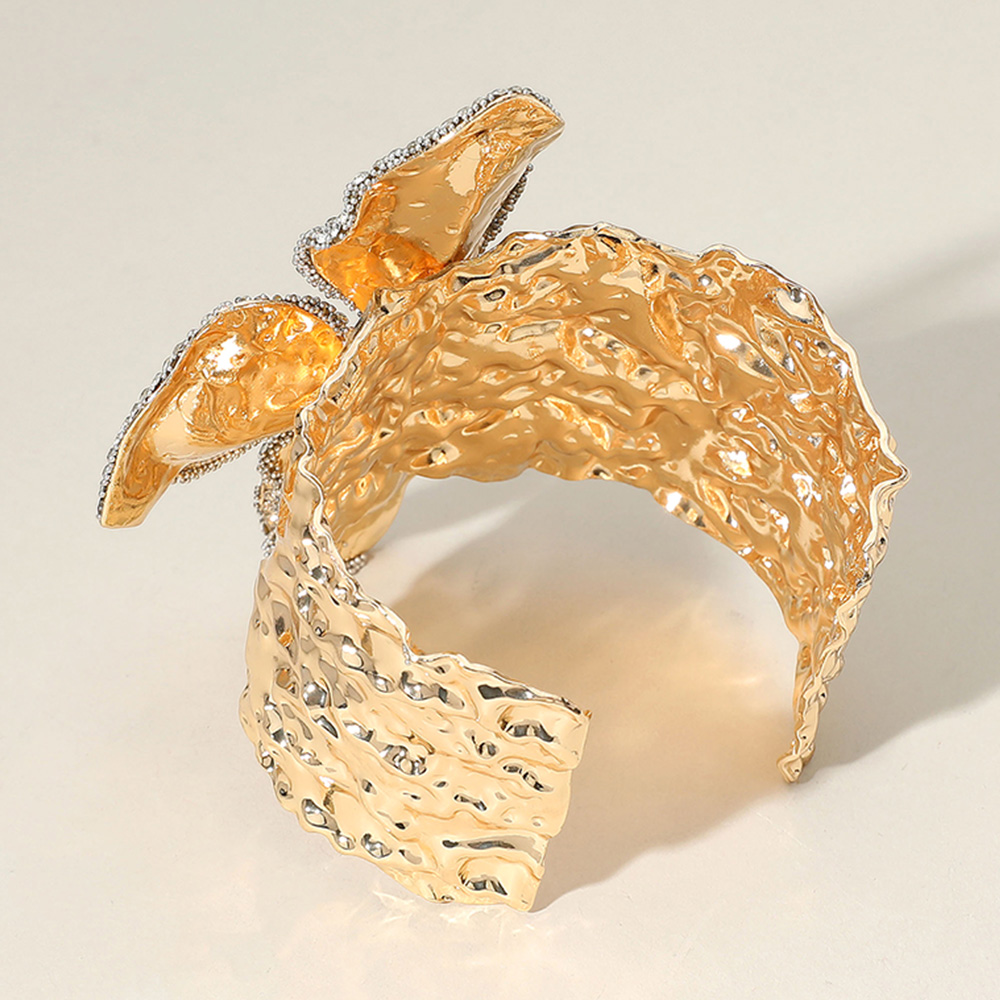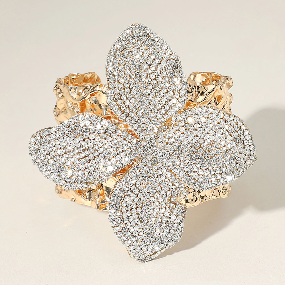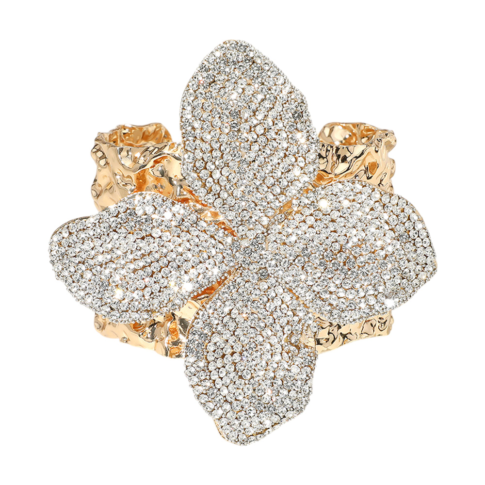 Stone Paved Flower Pointed Wide Cuff Bracelet