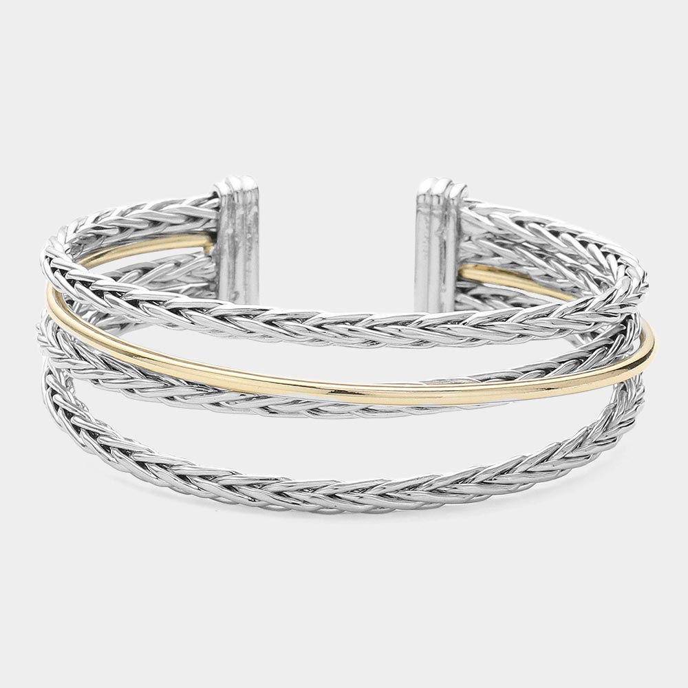 14K Gold Plated Two Tone Twisted Rope Oval Link Chain Necklace