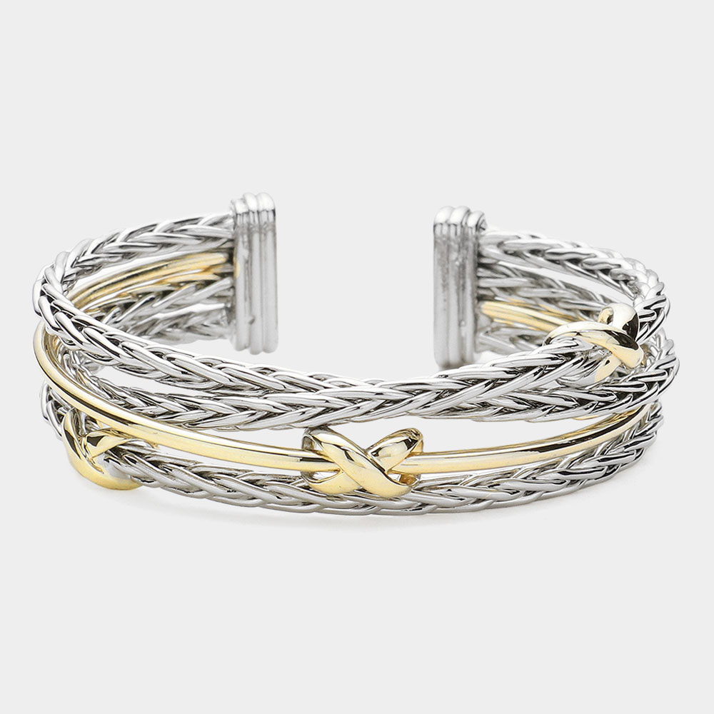 Two Tone Criss Cross Pointed Braided Metal Cuff Bracelet