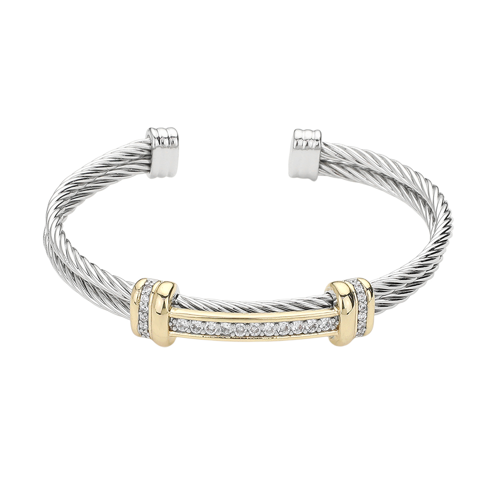 Two Tone CZ Stone Paved Rope Cuff Bracelet