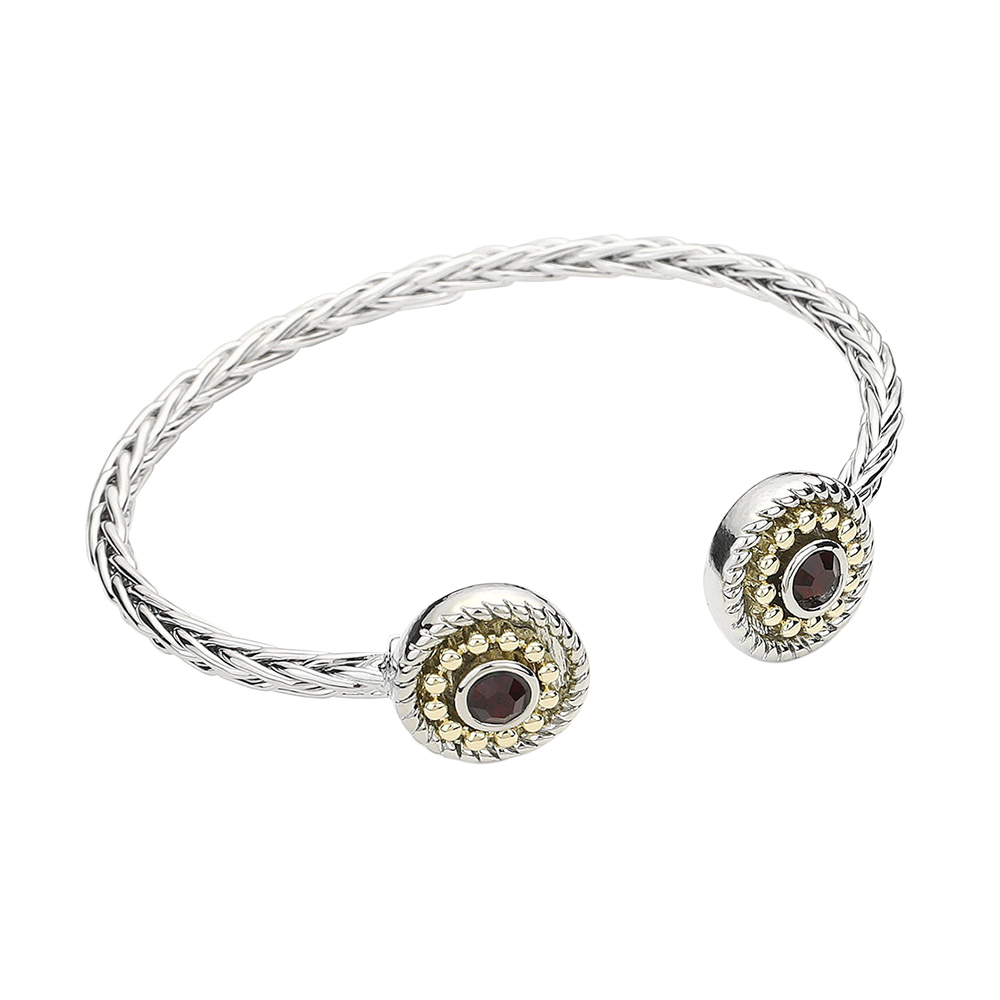 Details • Size : 0.6" H, 2.25" D • Cuff • Chic open cuff bracelet featuring twisted detailing and round gemstone-accented ends. A refined accessory that adds a touch of elegance and character to both casual and formal outfits.