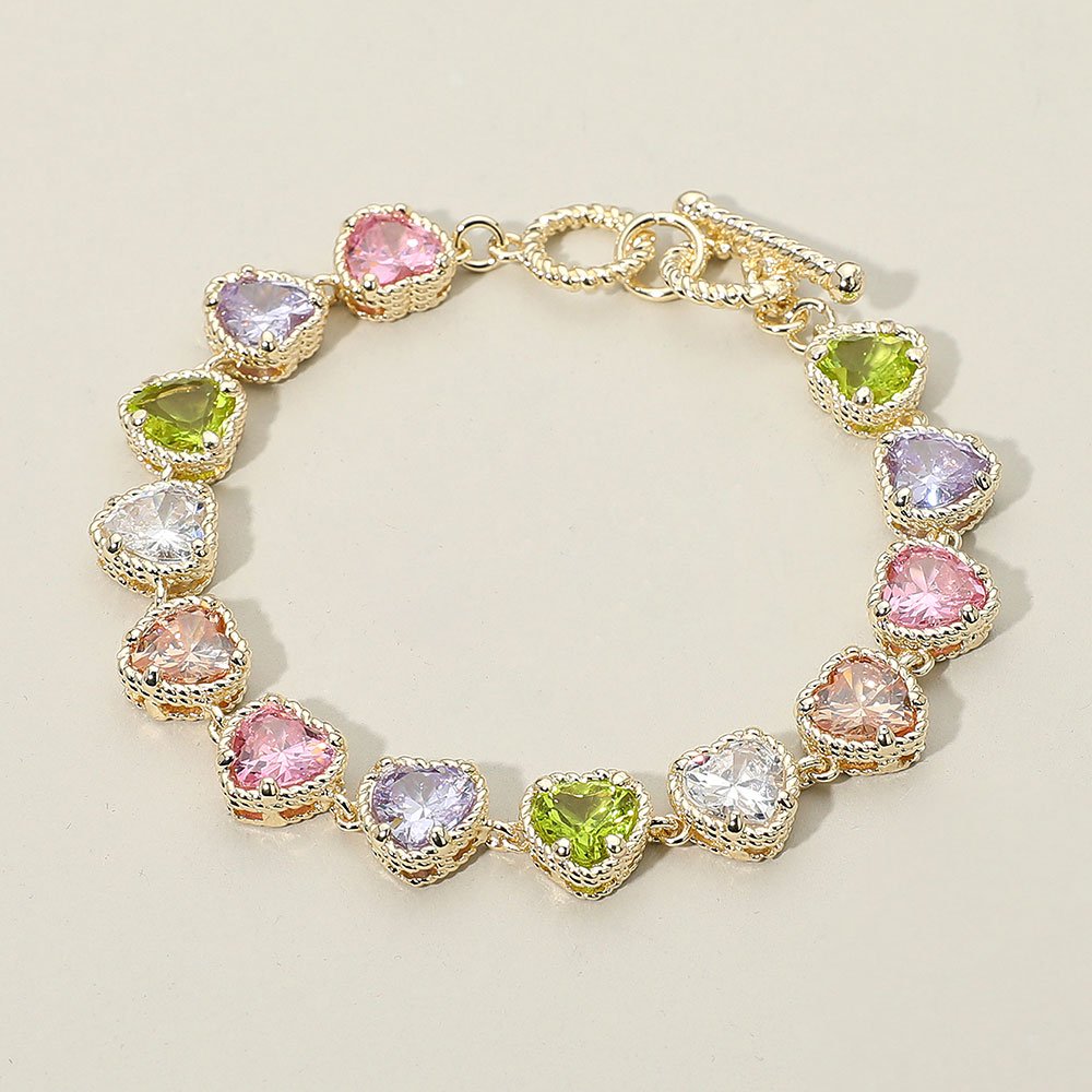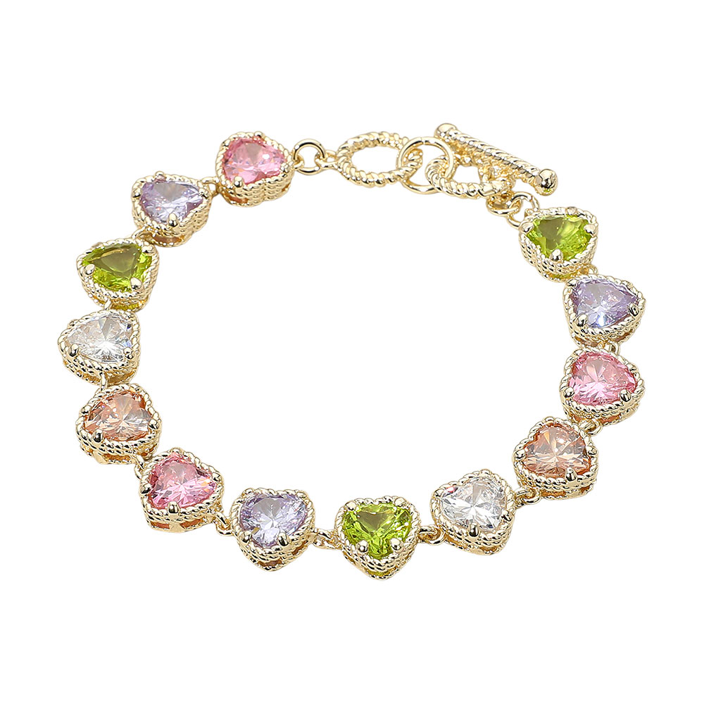 14K Gold Plated Multicolor Heart CZ Stone Cluster Link Toggle Bracelet 14K Gold Plated Multicolor Heart CZ Stone Cluster Link Toggle Bracelet