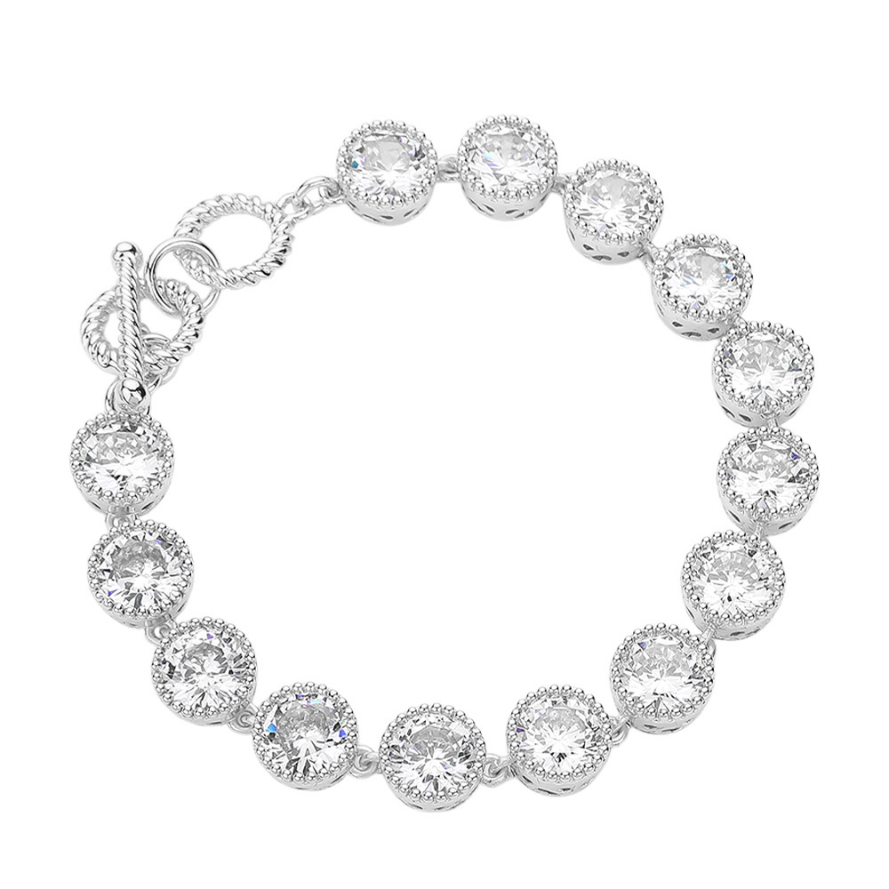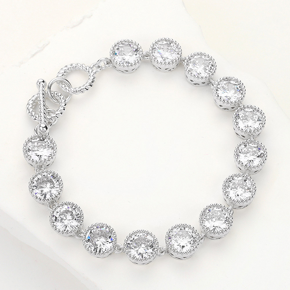 14K Gold Plated Round CZ Stone Bezel Link Toggle Bracelet