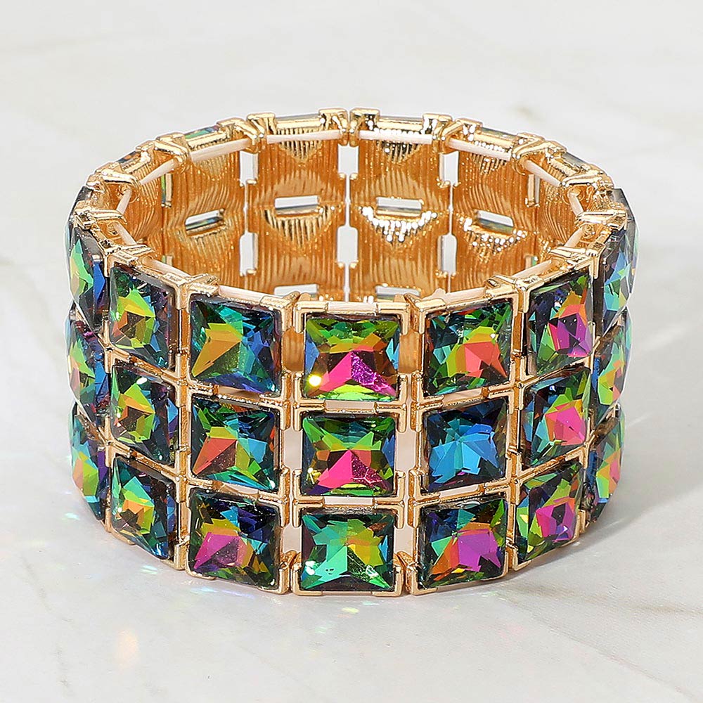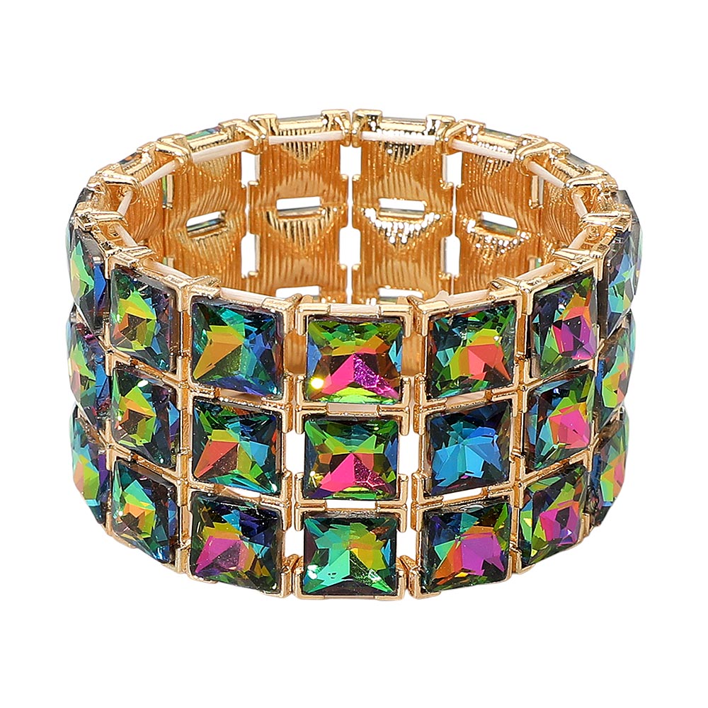 3-Rows Square Stone Stretch Evening Bracelet 3-Rows Square Stone Stretch Evening Bracelet