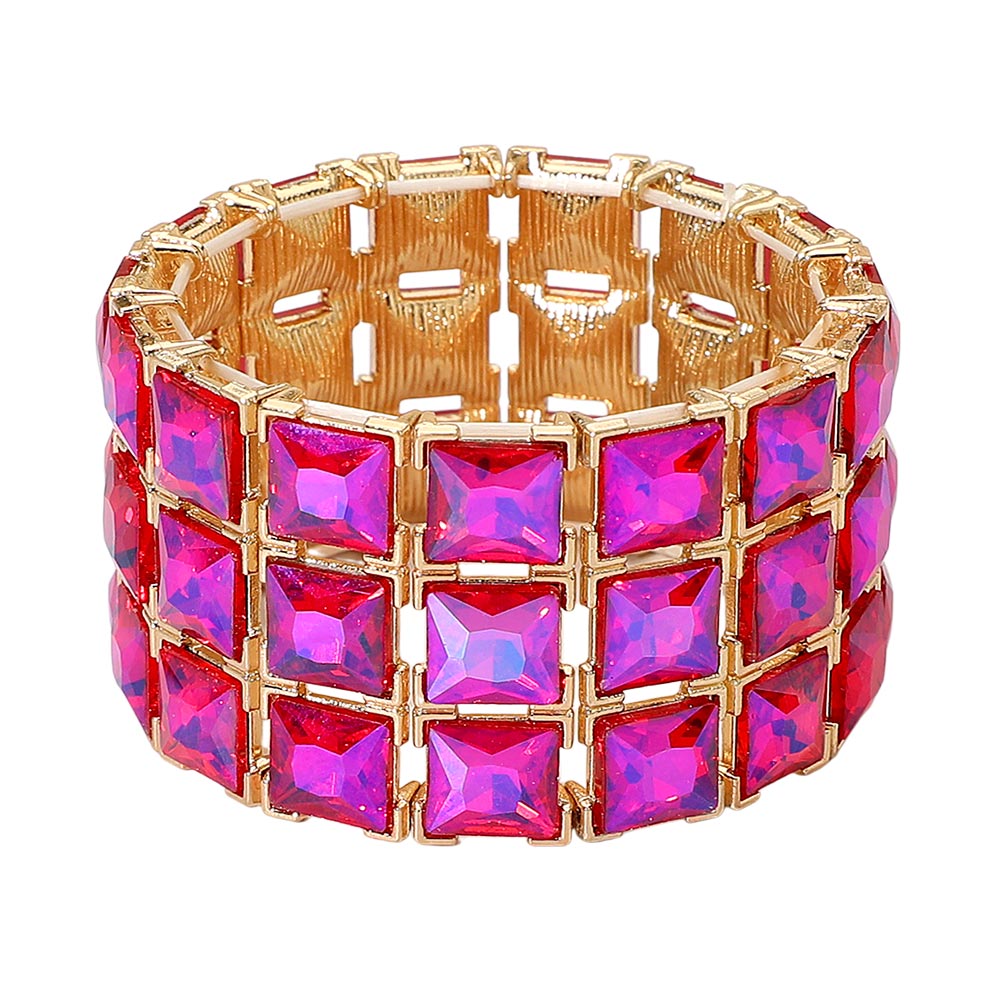 3-Rows Square Stone Stretch Evening Bracelet 3-Rows Square Stone Stretch Evening Bracelet