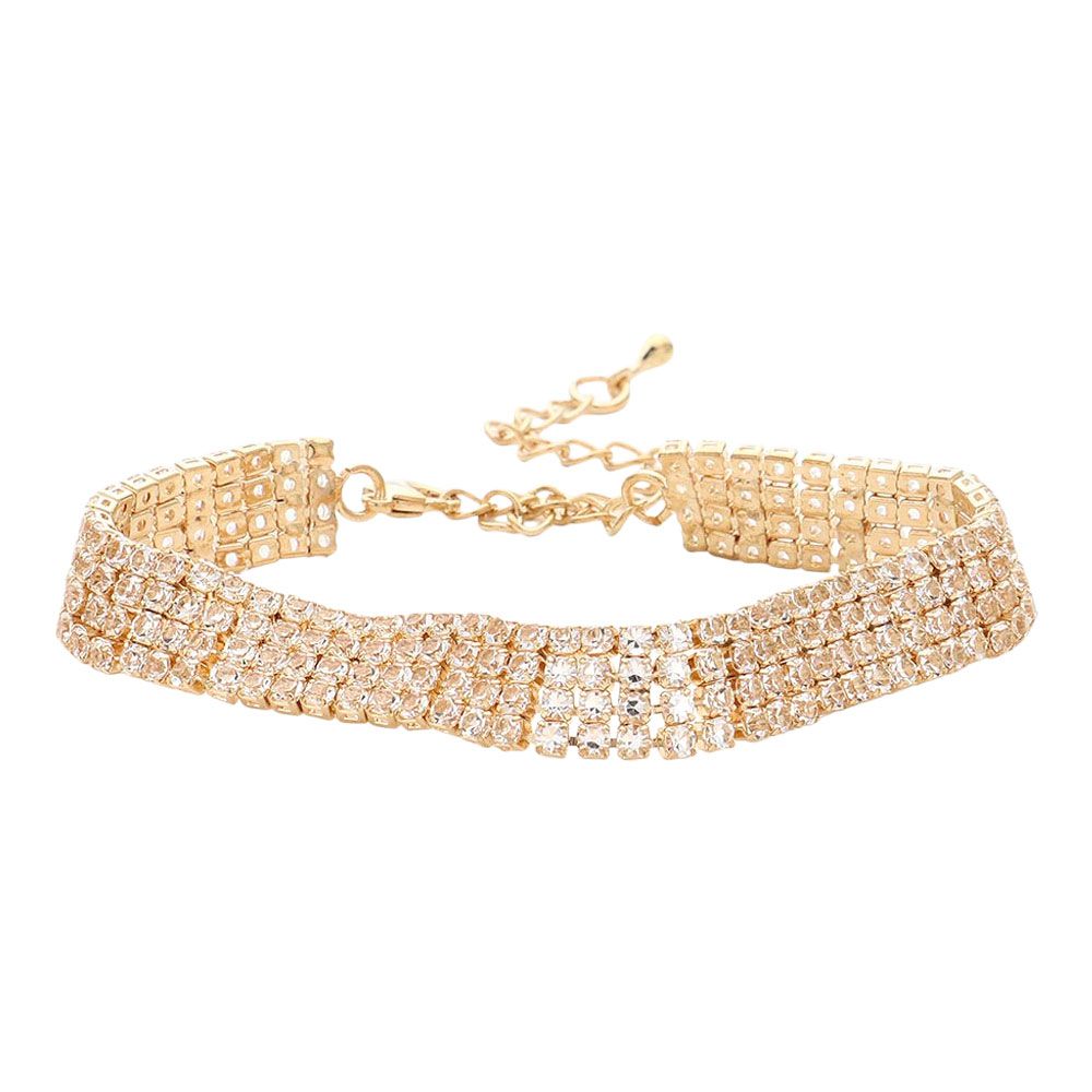 Details • Size : 0.4" H, 7" + 2" L • Lobster Clasp Closure • This four-row cz crystal bracelet delivers a perfect balance of sparkle and sophistication. Its layered design catches the light beautifully, adding elegance to any look. Ideal for evening wear, weddings, or special occasions, this bracelet is a timeless accessory that exudes refined glamour. • Lead and Nickel Compliant • CZ Cubic Zirconia