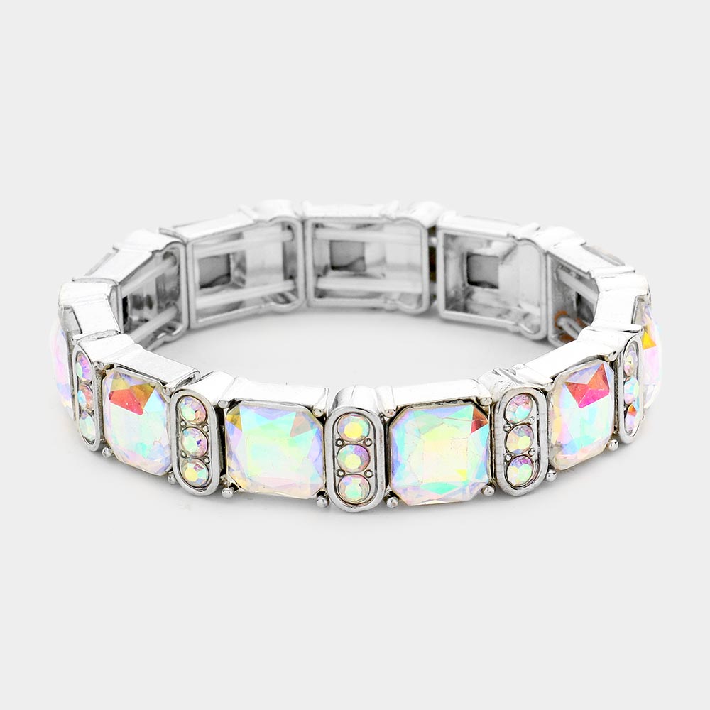 Emerald Cut Crystal Stretch Evening Bracelet